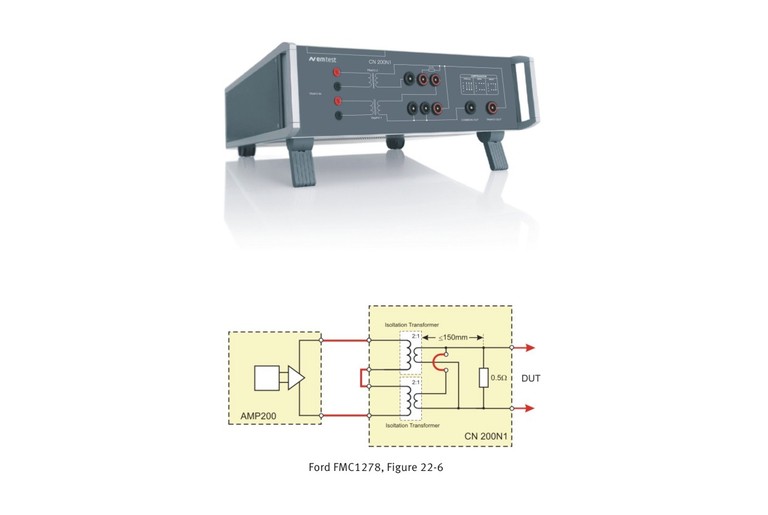 The AMP 200N1.1 can be used for testing the immunity to ground offset noise as per Ford FMC1278, CI 250.