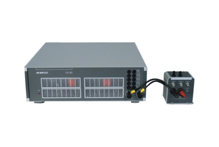 EM TEST recommend a maximum length of the connection leads between the CA BS 200N verification load (unit on the left side in the below picture) and the BS 200Nx electronic switch (right side unit in the below picture) of 0.5m.