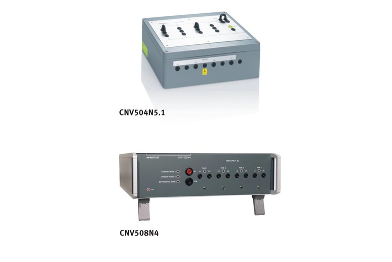 The OCS 500N6F comes with a built-in coupling/ decoupling network for either single phase or three-phase and is rated for currents of 16 A or 32 A per line.