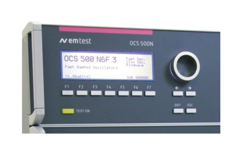 The OCS 500N6F series includes the test capabilities for fast damped oscillatory waves at 3 MHz, 10 MHz and 30 MHz up to 4.4kV and is extendable for slow damped oscillatory waves at 100 kHz / 1 MHz up to 3.0 kV (as per EN/IEC 61000-4-18) and for ringwave up to 6 kV as per EN/IEC 61000-4-12.