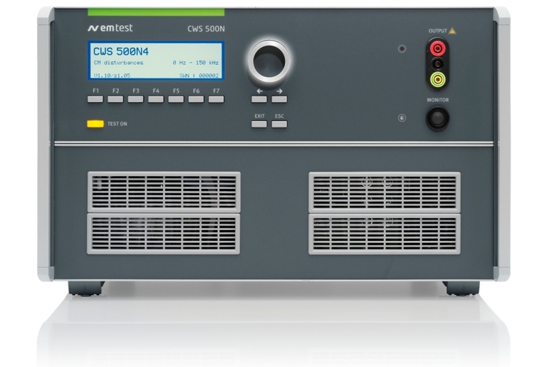 The CWS 500N4 covers the requirements as per IEC 61000-4-16 for low frequency test applications required for testing electrical and electronic equipment with the application of common mode disturbances to power supply, control, signal and communication ports.