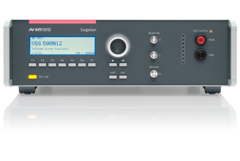 The voltage surge simulator VSS 500N12-series generates high voltage transients as required by several IEC standards. The voltage surge pulses are used to test the isolation (voltage withstand) capability of components, sockets, connectors, cables and many other items.